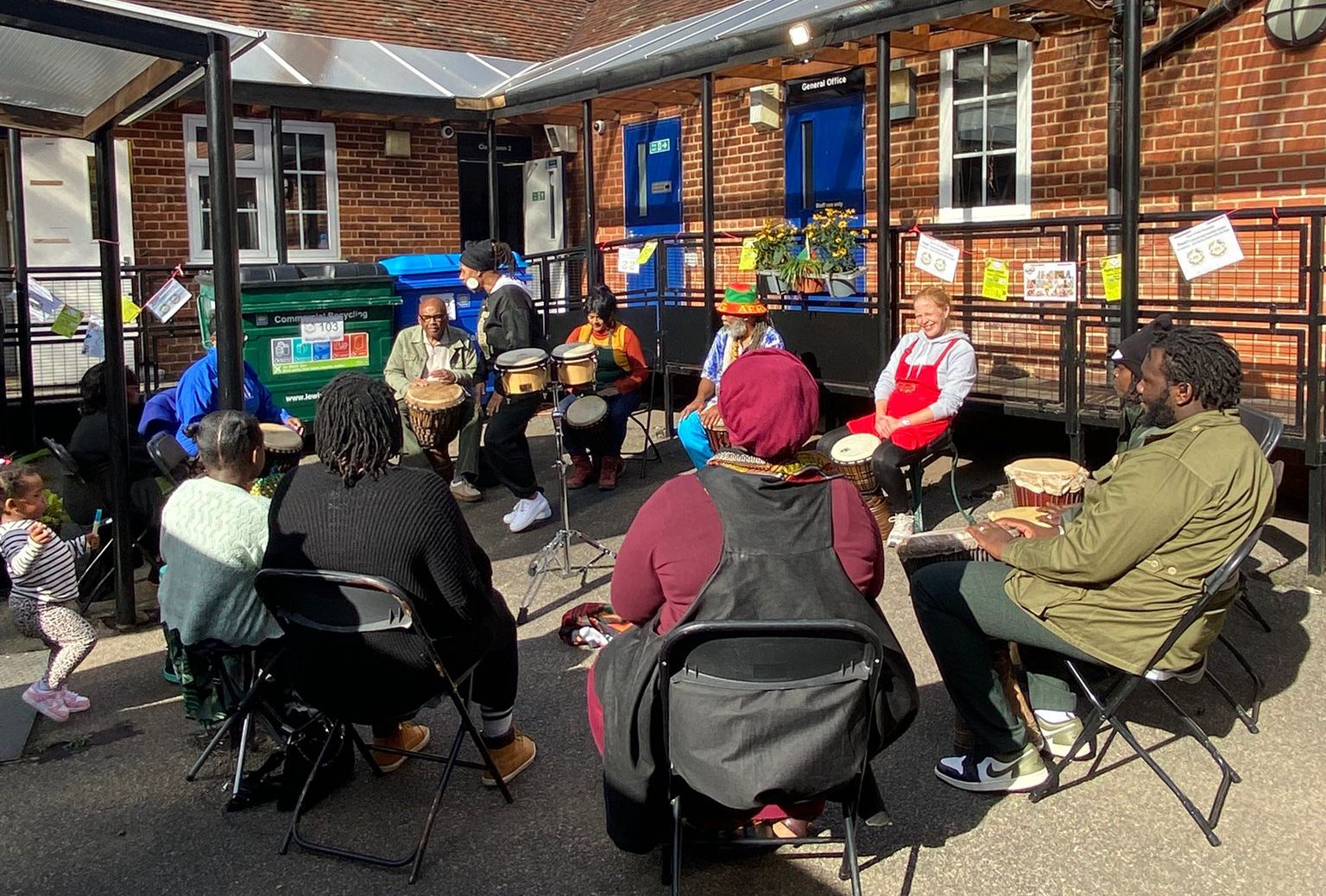 Volunteers were at the heart of the event- from setting up the community space with vibrant decorations, stalls and preparing delicious ital soup and food, to hosting the healing massage sessions, setting up for drumming therapy, dj’ing roots music and workshop presentation and conversation that reflected the vibrant African-Caribbean heritage of the downham area, never heard before! Their energy transformed the day into a true community festival of love, kindness and belonging.